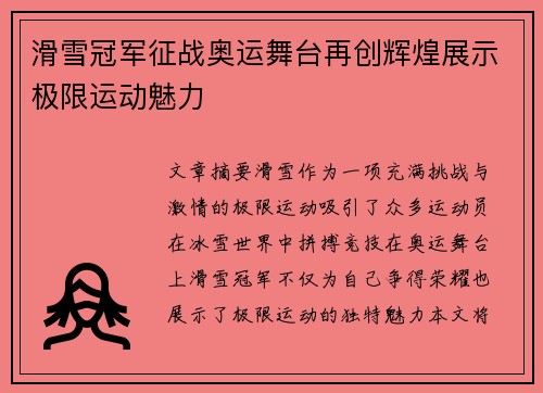 文章摘要:随着欧冠淘汰赛的逐渐推进,豪门球队间的对决愈加激烈,每一场比赛都充满着悬念与激情。从战术博弈到球员表现,再到球队的历史背景与本赛季的表现,众多因素交织在一起,使得这场巅峰对决更加引人注目。各大豪门纷纷亮剑,争夺最后的荣耀,而最终的赢家,将在这片星光璀璨的舞台上,书写属于自己的传奇。本篇文章...